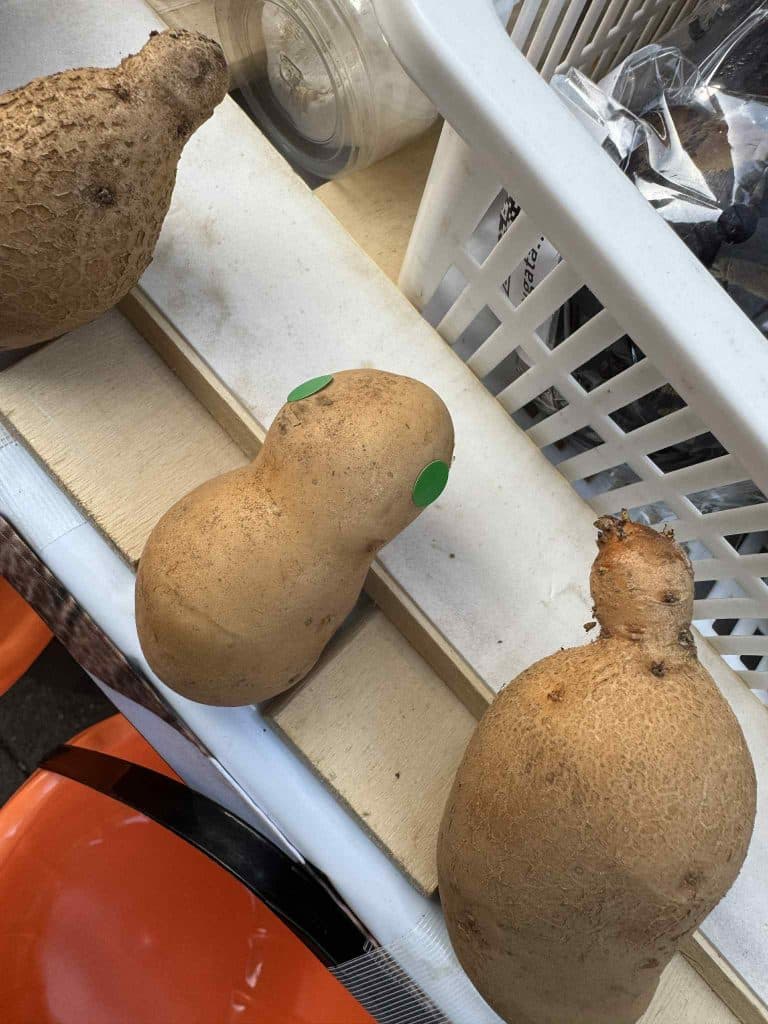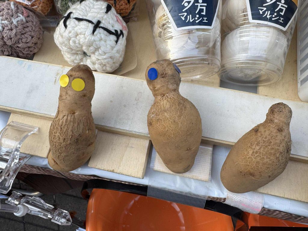 ちょうど入荷したじゃがいもがですが、なぜかダルマ型が多く、思わずシールで目をつけてしまいました(笑)