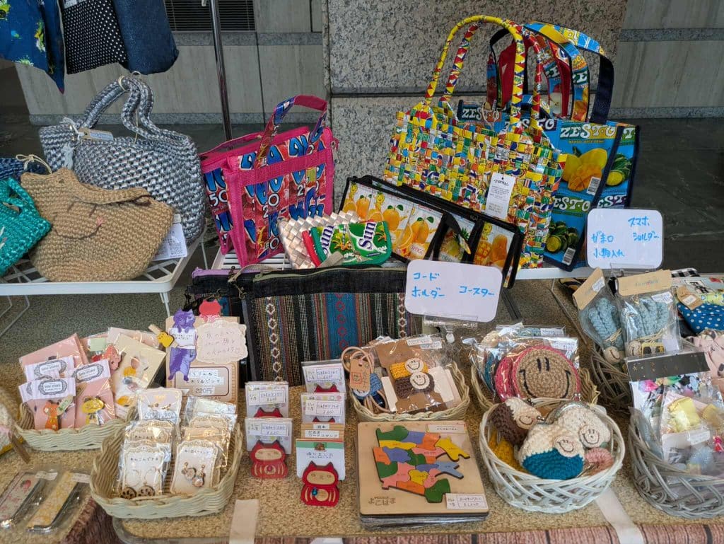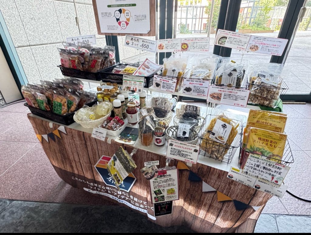 福祉施設の利用者の皆さんの製品、介護や闘病や育児などで外出やご自身での販売が難しい方の製品、地域課題から生まれたアップサイクル製品などが並びます。